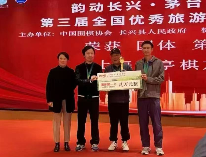 当年11月16日由徐虹白徐老,汪文琪老师,周祥老师组成的上海华亭棋友会围棋队在由中国围棋协会主办的“韵动长兴,茅台喜宴”杯第三届全国优秀旅游城市围棋赛中勇夺团体冠军。这是松江体育围棋类项目上的第一个全国围棋团体冠军。也是为棋友会成立三周年献礼!